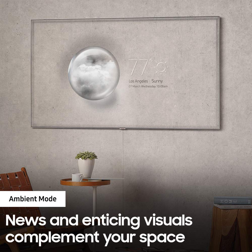 - AMBIENT MODE: Customizes and complements your living space by turning a blank screen of this big screen TV into enticing visuals including décor, info, photos and artwork